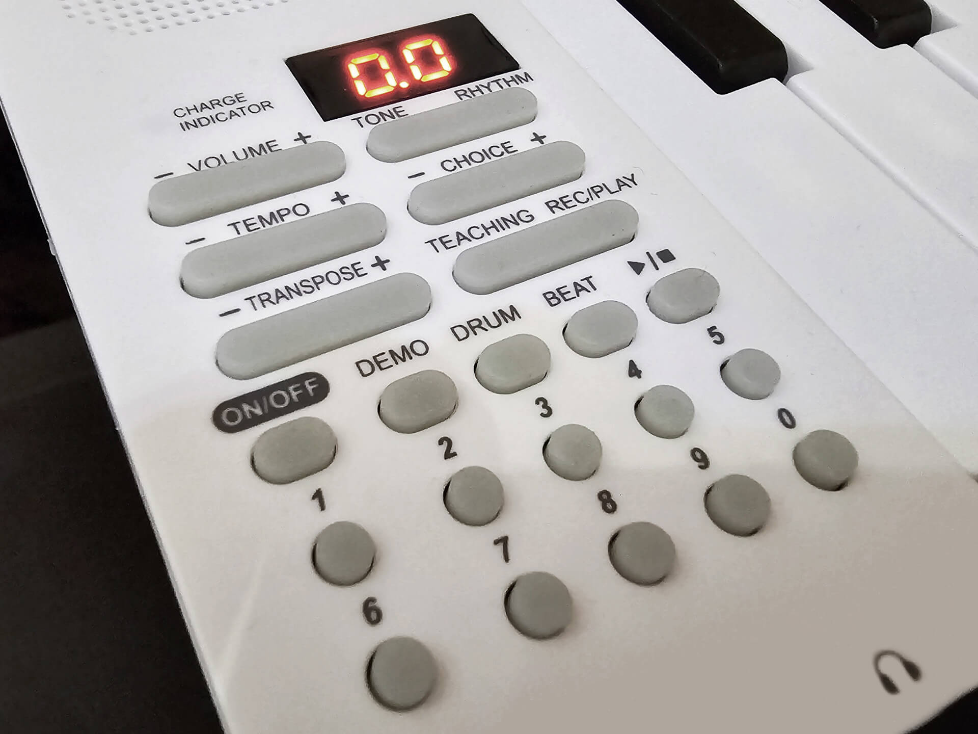 Für Anfänger gibt es nette Lernprogramme: Zuerst wählt man eines von 24 Liedern – darunter Klassiker wie Old MacDonald Had a Farm oder For He’s a Jolly-Good Fellow (und ja, diesmal stimmt die Liste in der Anleitung tatsächlich). Anschließend stehen zwei verschiedene Übungsmodi zur Auswahl. Im ersten kann die Hauptmelodie mit irgendeiner willkürlichen Taste gespielen werden um das Taktgefühl zu trainieren. Im zweiten Modus zeigt das Display die zu spielenden Tasten an und man lernt die Melodie des Liedes.