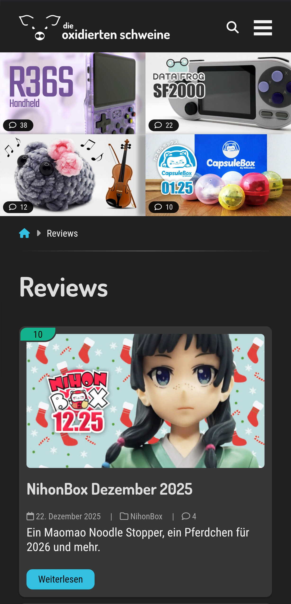 Wenn ihr zusätzliche Wünsche oder Ideen habt, lasst es uns gerne wissen. Klickt dazu einfach im Footer unter „Kontakt“ auf den E‑Mail-Link und teilt uns mit, was wir verbessern können. In den nächsten Tagen feile ich sicher noch an ein paar Details. Und falls ihr euch jetzt fragt, wie die oxidierten Schweine im „Licht aus“-Modus aussehen – hier ein paar Beispiele direkt vom Smartphone: