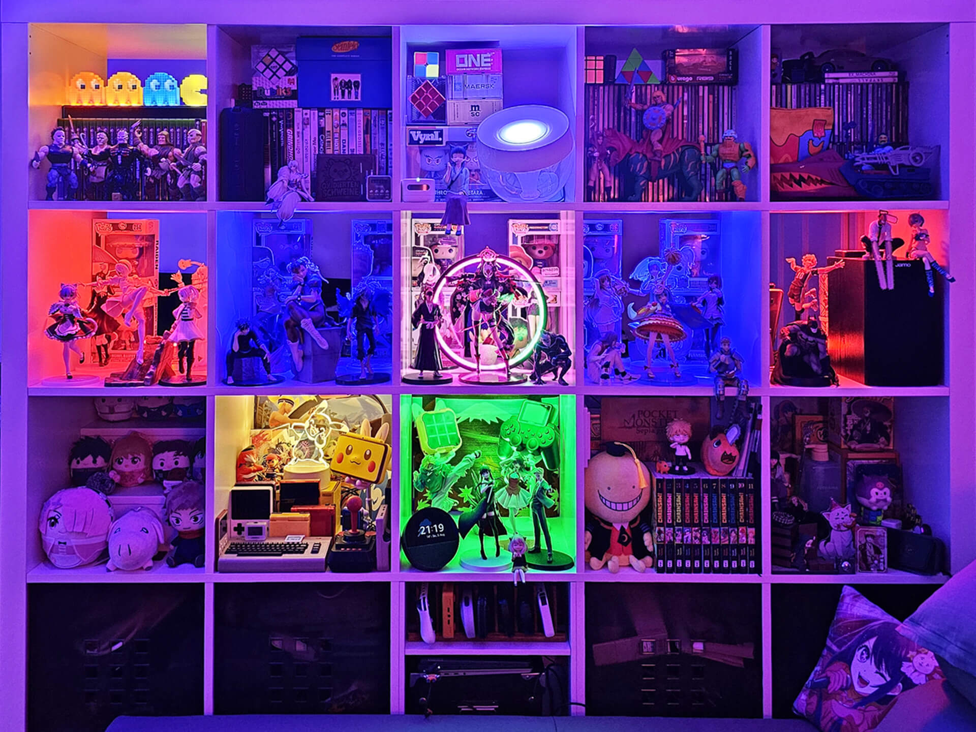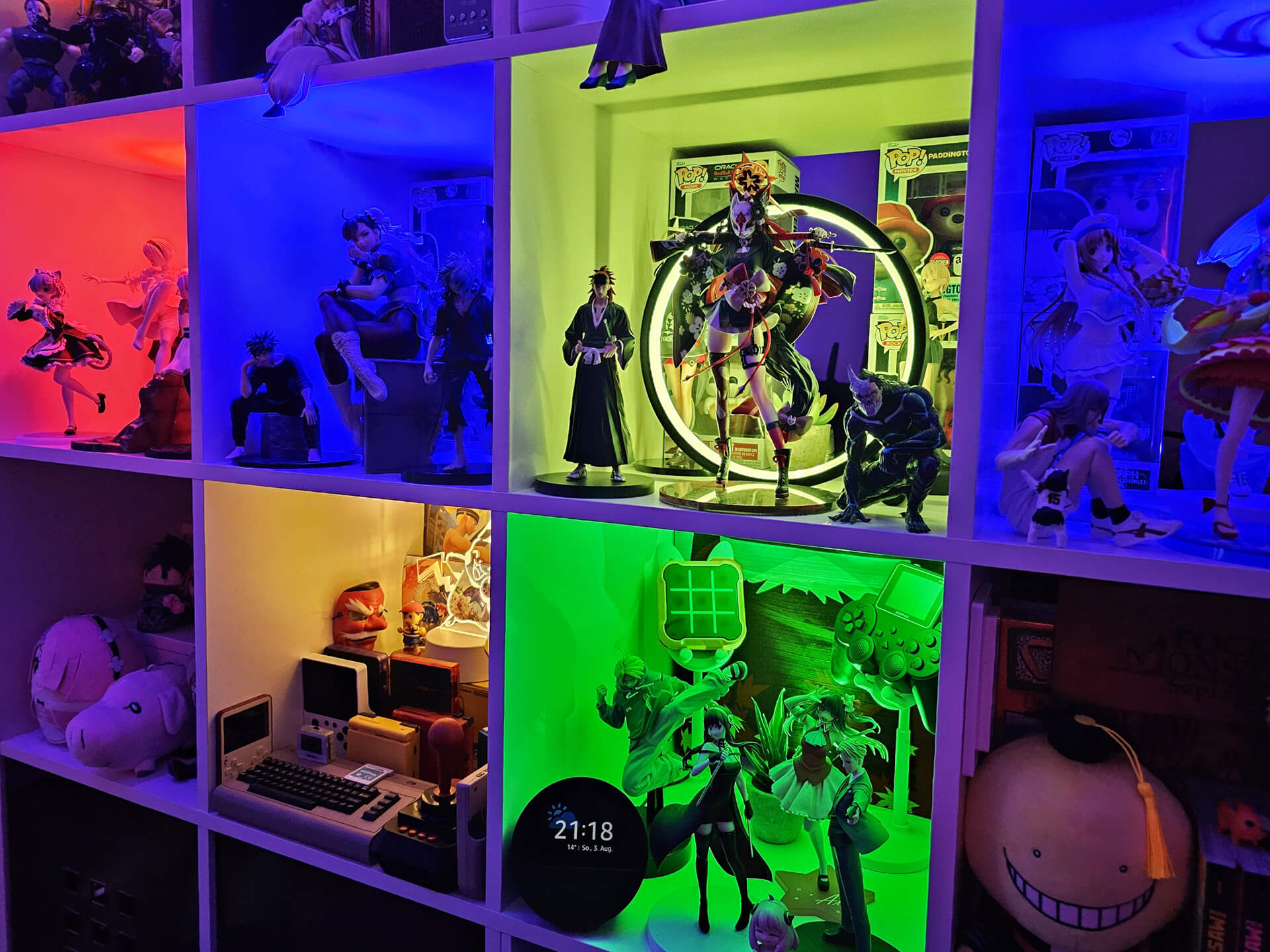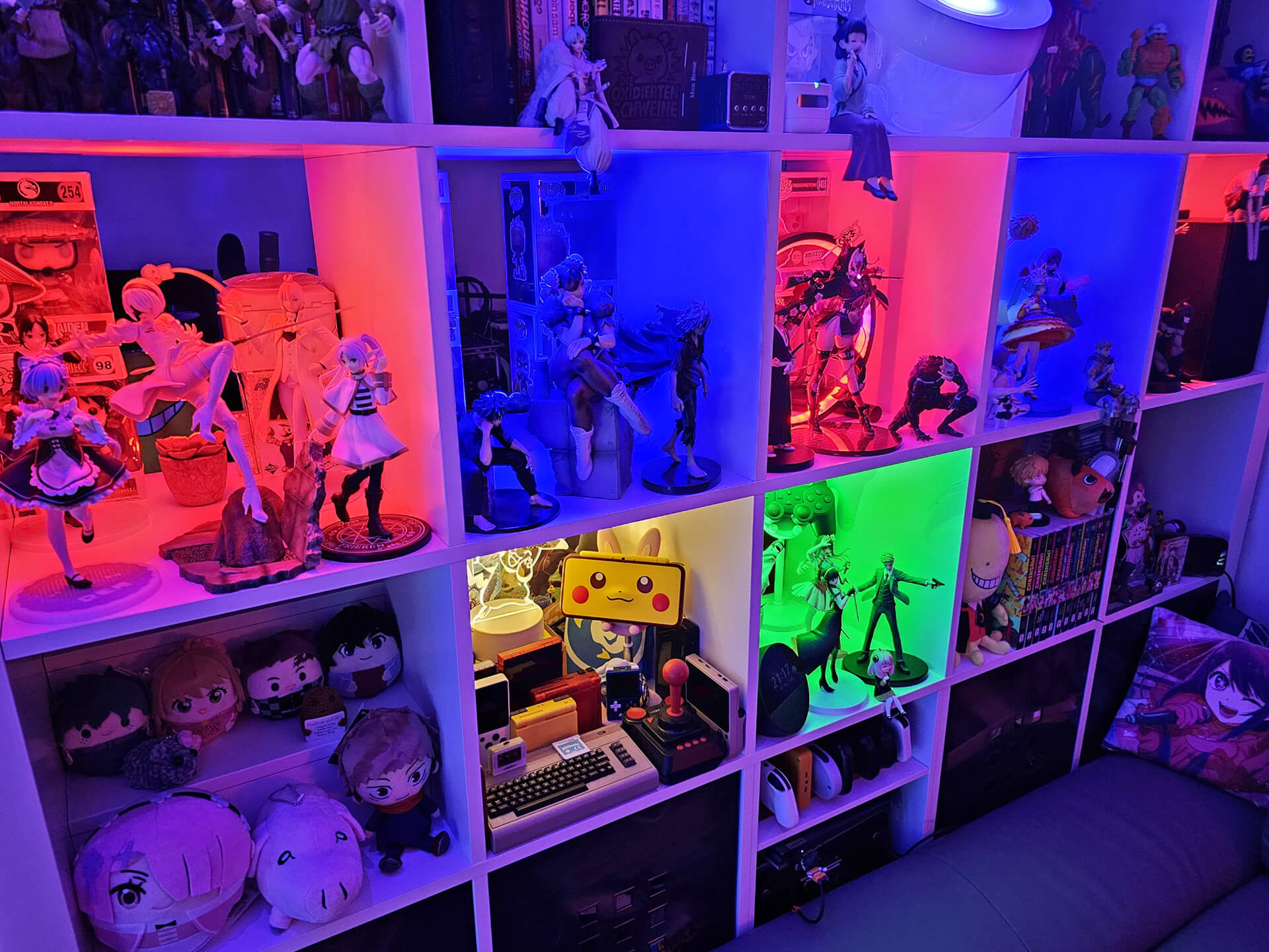 Mein Ikea-KALLAX-Regal ist voll mit coolen Figuren – also habe ich mir Gedanken gemacht, wie ich diese auch bei wenig Licht schön in Szene setzen kann. Eine Beleuchtung musste her! Natürlich sollte das Ganze nicht meinen Geldbeutel sprengen und individuell anpassbar sein. Nach ein wenig Stöbern bei AliExpress bin ich auf die perfekte Lösung gestoßen, die auch noch per Sprachbefehl und Zeitsteuerung funktioniert. Für die Beleuchtung von sechs Regalfächern habe ich keine 20  Euro ausgegeben und meine Figurensammlung erstrahlt jetzt sogar in meinen Wunschfarben. Wie ihr euer Regal mit coolem Licht aufwertet – ganz einfach und für wenig Geld – erkläre ich euch jetzt. Alle Links zu den benötigten Produkten findet ihr am Ende des Beitrags.