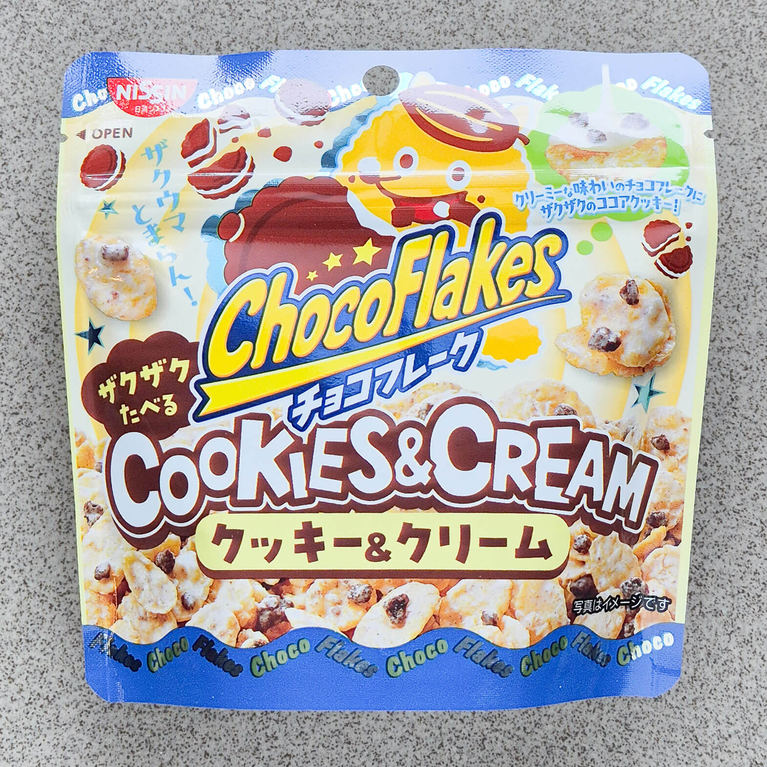 - Nissin Choco Flakes Cookies and Cream: Die waren letztens mit Schoko-Minz-Geschmack schon mal drin. Waren ganz lecker. 30 Gramm.