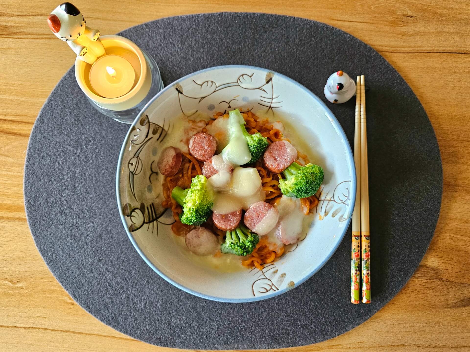 So, hier: Fröhlichen 3. Advent! Kerzenschein, Tannenduft, Besinnlichkeit – und Käsenudeln. Natürlich. 😁 Nein, tatsächlich ist es eher ein Zufall, dass die heute auf dem Testprogramm stehen. Und dass jetzt zum gefühlt 100. Mal in Folge Buldak getestet wird, ist auch keine Absicht. Das liegt eigentlich nur daran, dass ich vor ein paar Monaten einige davon bestellt hatte, und die müssen jetzt halt langsam mal weg. So, jetzt wisst ihr das auch.