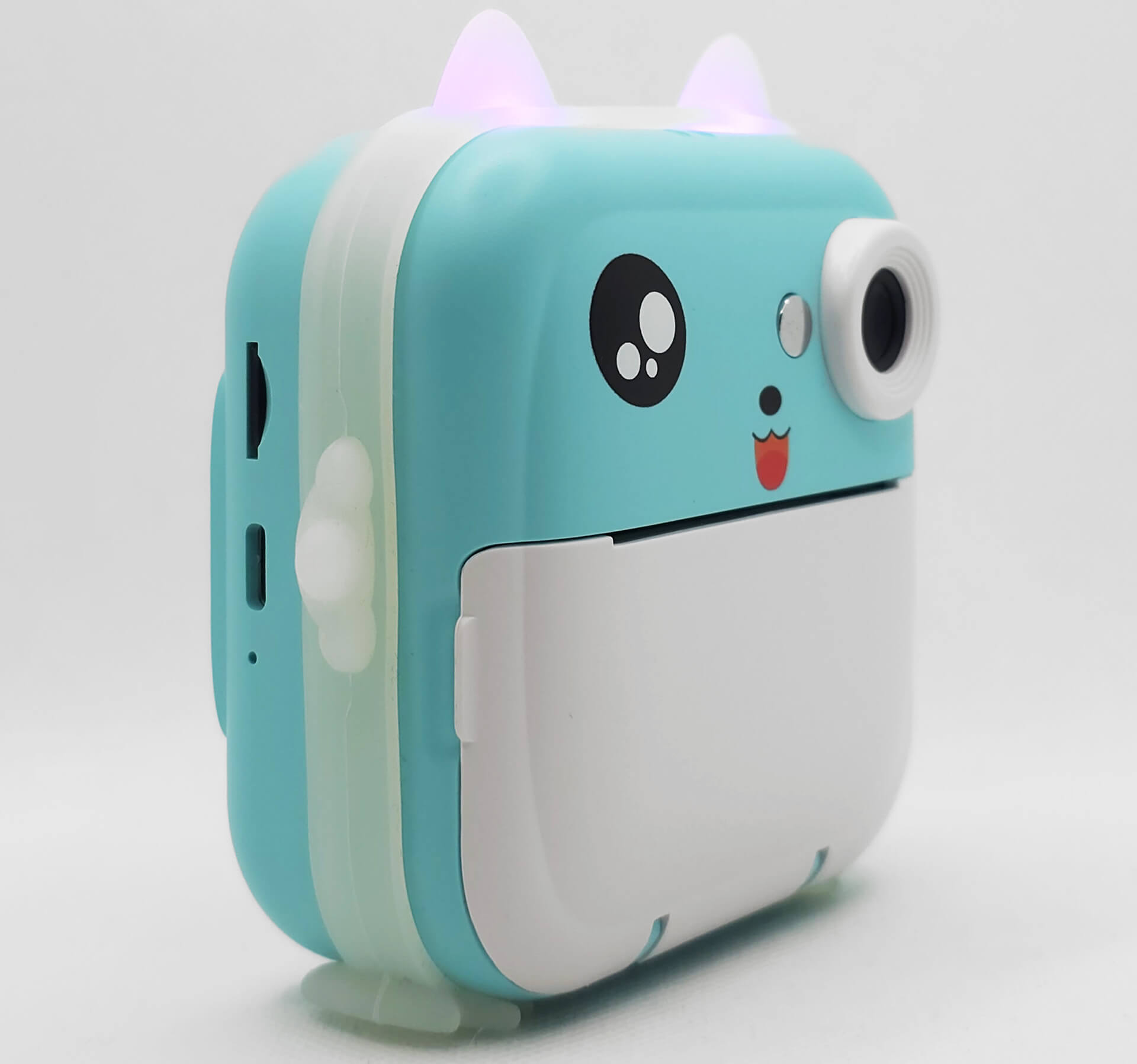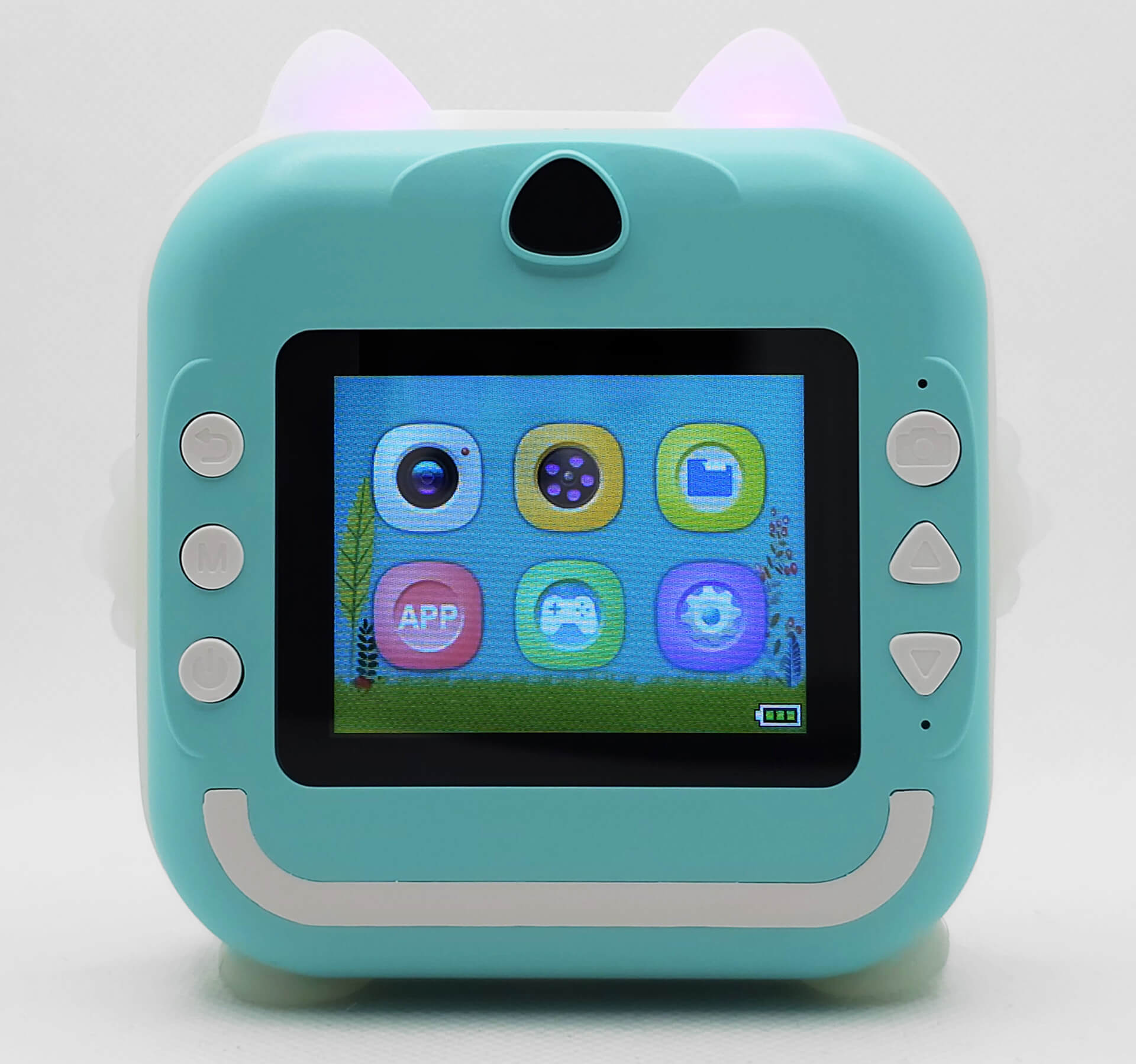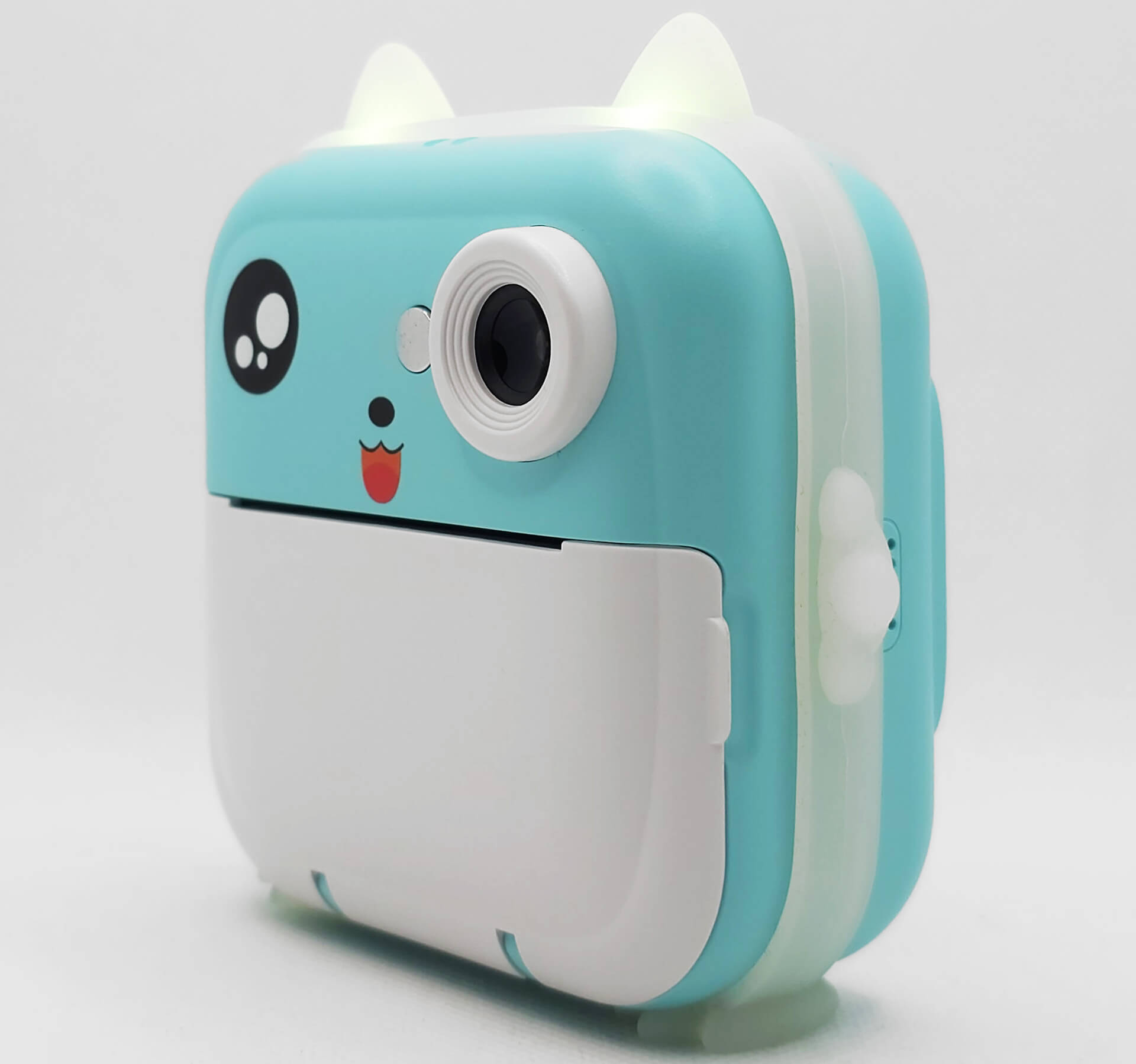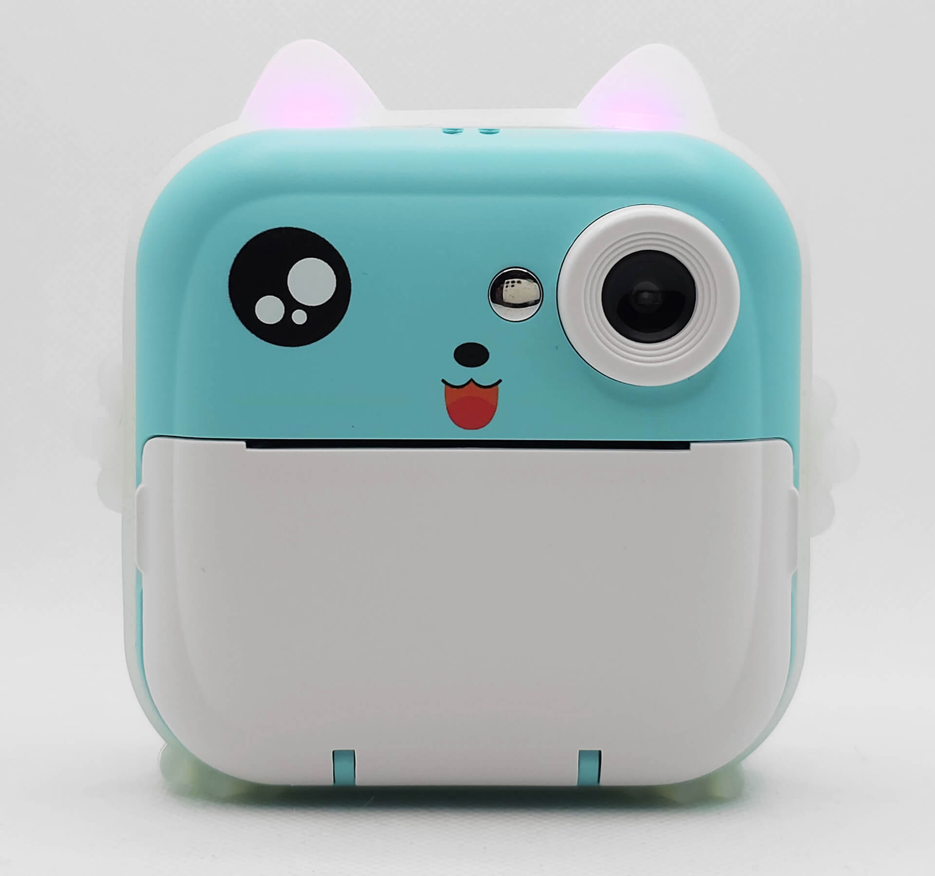 Schaltet man die Kamera ein, leuchten die beiden Öhrchen in verschiedenen Farben, und man wird von einem bunten Menü auf einem hellen, blickwinkelstabilen Display begrüßt. Über die Einstellungen lassen sich zahlreiche Anpassungen vornehmen – darunter Druckdichte, Druckmodus (Dot Print, Gray Print), Fülllicht, automatische Fotoausgabe direkt nach dem Knipsen, Selbstauslöser, Datumsstempel, Sprache, Bildschirmschoner, Auto-Abschaltung sowie Videoauflösung (FHD, HD) und Bildqualität (12 MP, 20 MP, 48 MP).