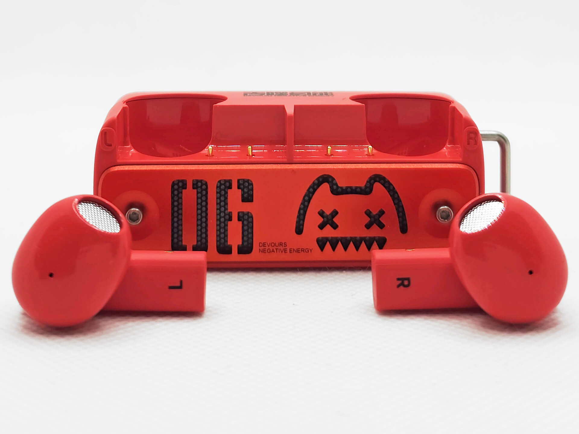 Die ZOMBIESCAT QCWS‑B8 stehen in drei Farben zur Auswahl: Schwarz, Rot und Weiß. Ich habe mich für die roten entschieden. Geliefert wurden sie in 6 Tagen per Briefträger. In der schicken Verpackung liegen das Ladecase samt Kopfhörern und einem farblich passenden Lanyard, mit dem man sich das Case um den Hals hängen kann, außerdem ein USB‑C‑Ladekabel und eine Anleitung.
